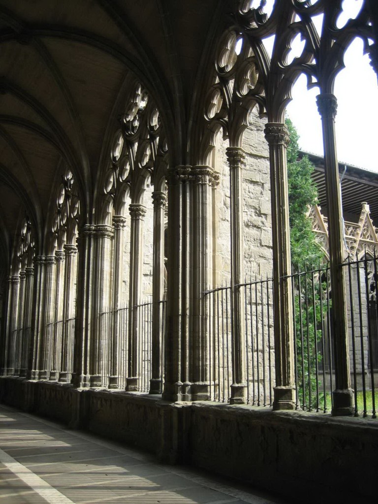 Aparte de mi ruta Jacobea, también visité lugares que me interesaban. Muy cerca de la Ruta, estaba Lumbier. Era un pueblecito, que tenía un tren de vía estrecha hasta Pamplona , hoy desaparecido. Es una Vía Verde, que atravesando un túnel apareces en la Hoz de Lumbier. Un desfiladero de altas paredes con nidos de rapaces.