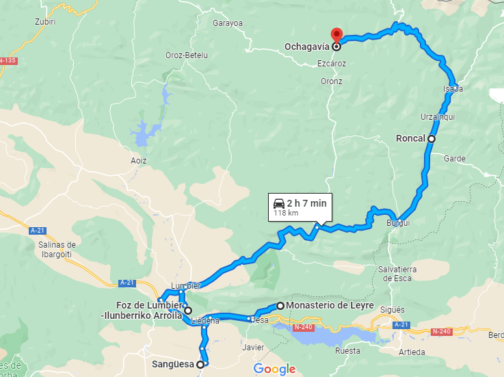 Muy cerca de la ruta, están los Valles de Roncal y Salazar, visité Roncal, vi el mausoleo de Gayarre, Isaba y yeendo hacia el Puerto de Belagua, vi también un magnífico Dolmen y volví por Ochagavia, Navascués, y Lumbier a Sangüesa.