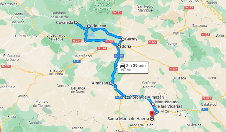 Morón de Almazán y Monteagudo de las Vicarías tienen Iglesias románicas y Castillo, y se llega al Monasterio de Santa María de Huerta, visita obligada por estas tierras.