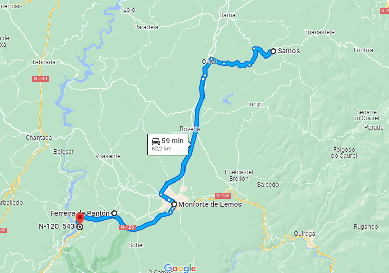 Llegué a Ferreira de Pantón , y por recomendación de una compañera, me alojé en la Pensión Mayte, Rúa Cruz Puente Ordax, 5, 27430 Ferreira de Pantón, Lugo. Con un mirador de estilo gallego. Fantástica.