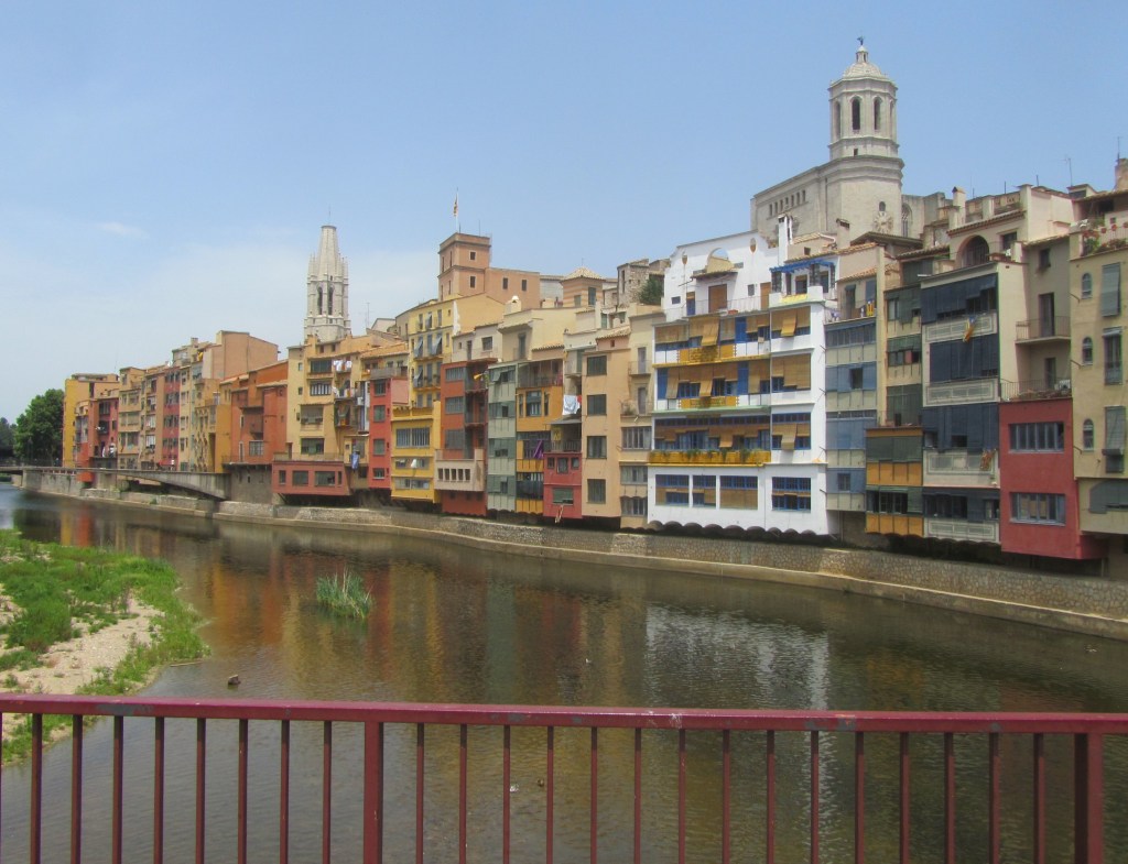Girona, es una ciudad bien comunicada, por Rodalíes con Barcelona , Figueres y Portbou y AVE, Ouigo, con Barcelona, Madrid, Zaragoza, Lleida y Francia. El Río Oñar separa el casco antiguo del resto. La parte antigua, tiene rincones muy bonitos, tiene dos recintos fortificados, la Força Vella, romana y el ensanche medieval, junto con la judería, calles y plazas porticadas, barroco, Museos e Iglesias románicas y la Catedral. Las Casas que dan al río Onyar, se reflejan en sus aguas.