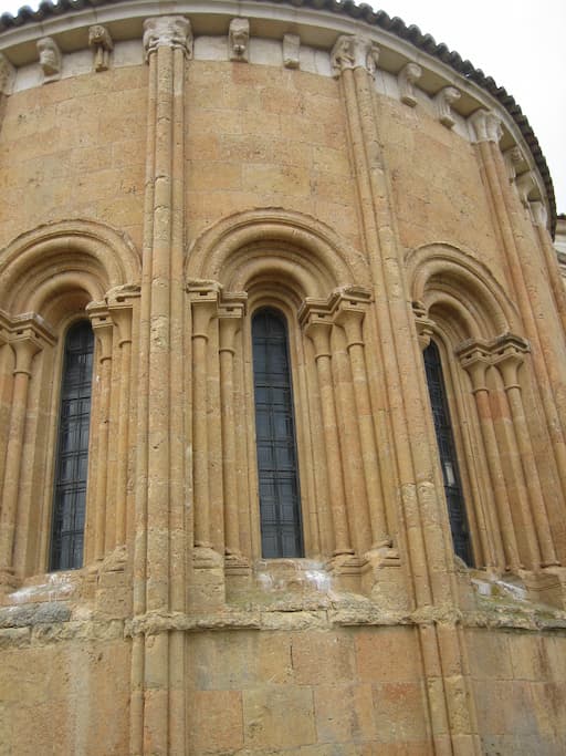 Ya yendo en coche y muy cerca de León está el Monasterio de Santa María de Sandoval (https://www.turismocastillayleon.com/turismocyl/es/arte-cultura-patrimonio/monasterios/monasterio-santa-maria-sandoval). Se construyó en 1142 y empezó a decaer en el siglo XV. Tenía dos claustros pero sólo se conserva el del siglo XVII, puerta románica y ábsides. Con la Desamortización, empezó su ruina. Visitable.