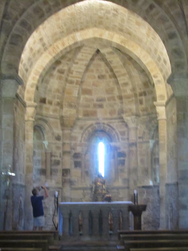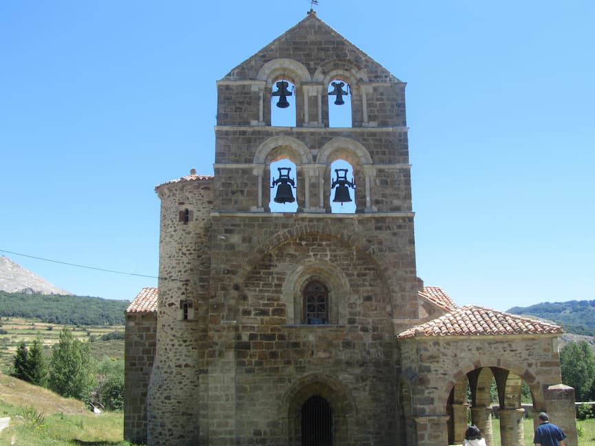 San Salvador de Cantamuda, (https://www.palenciaturismo.es/visitar/localidades/san-salvador-cantamuda), es un lugar idílico en plena montaña, por aquí pasa el Camino Lebaniego, sus casas llenas de blasones, su puente del siglo XIII, y su fantástico templo románico, con una espadaña, muy especial. Si seguimos por esta carretera, llegaremos a Potes, por lo que la excursión, es muy interesante. Pero sin duda, uno de los grandes tesoros del templo es la mesa de altar compuesto por un ara que descansa sobre columnas con capiteles de similar hechura a los de la cabecera
