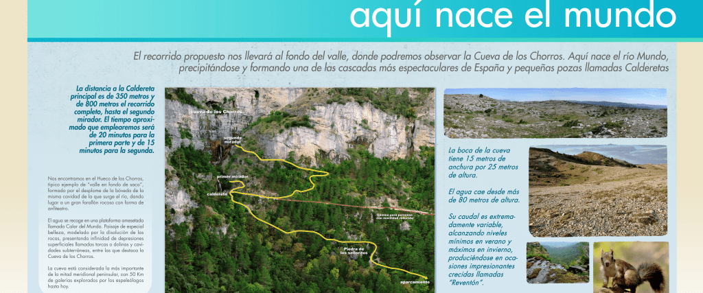 Yo visité esta zona, cuando hacía Espeleología, y es que detrás de la Cascada, en la que nace el Río Mundo, está la entrada a una cueva, y por encima, en la meseta hay muchas entradas a cuevas. El paisaje es sensacional y merece la pena hacer una escapada.