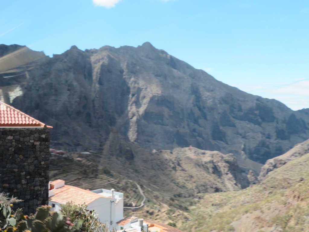Atravesamos el Parque Nacional y llegamos a la zona de acantilados al oeste de la Isla. Por la zona de Masca, la ubicación de este pequeño pueblo en un valle entre acantilados es tan idílica como enrevesada.