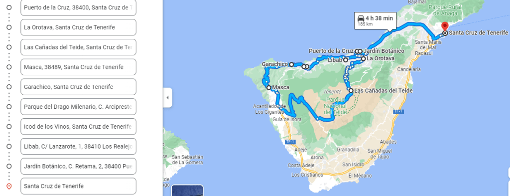 Empezamos el viaje en el Puerto de la Cruz, cerca de Los Realejos. Desde allí fuimos por La Orotava y el Parque Nacional del Teide.