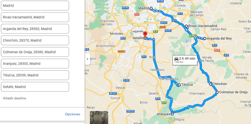 Después Colmenar de Oreja, a 50 km de la capital, unida por autobús interurbano. Líneas 337 y 415a. https://www.esmadrid.com/colmenar-oreja