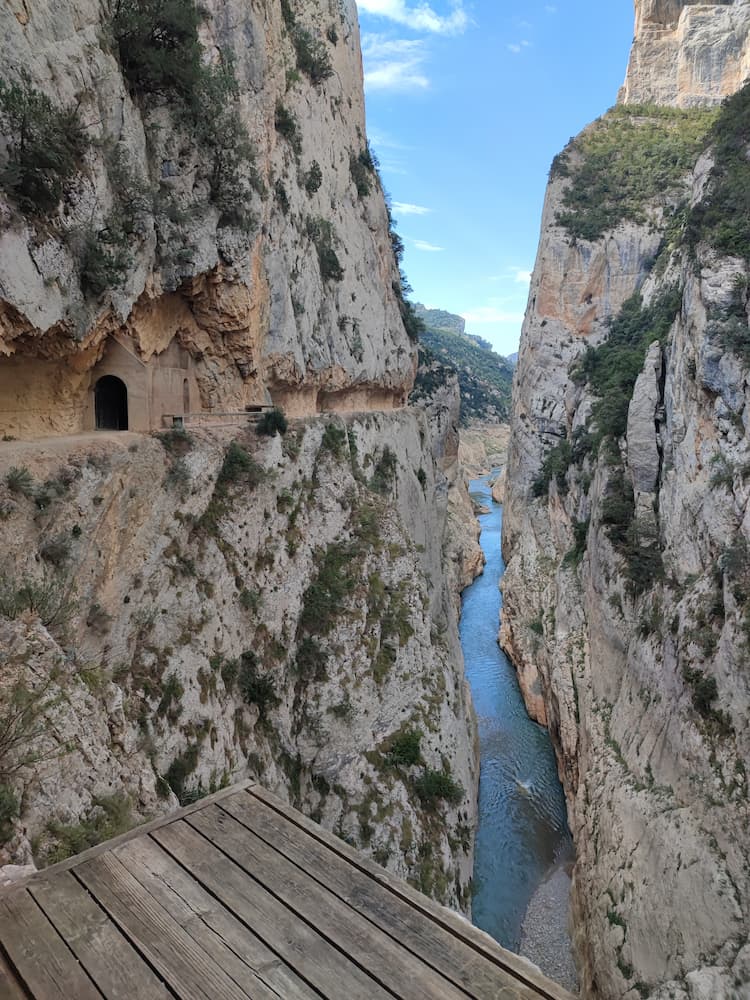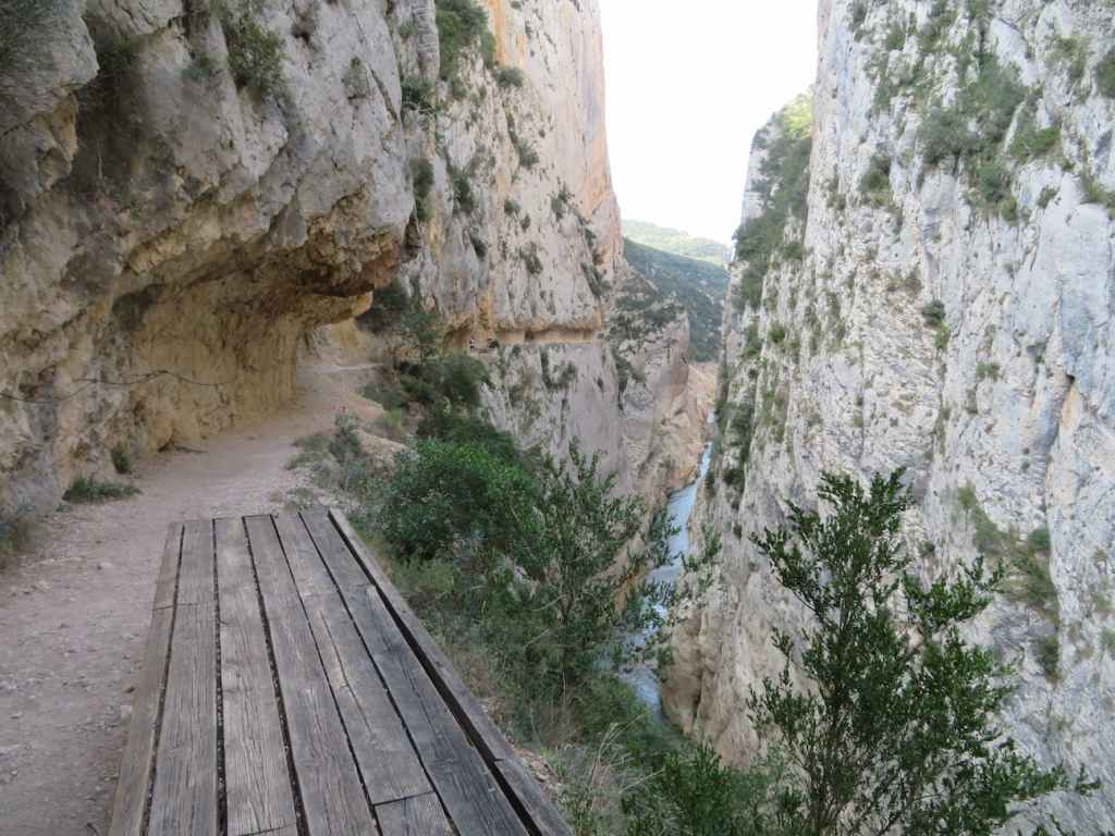 En esta página vienen 4 itinerarios posibles de dificultad media y uno de baja, que es el Camino nuevo, y que yo seguí. Tiene 3’5 kms. Vienen mapas. Si se empieza por el Parking de LA Masieta, al final están las Pasarelas de Montfalcó, https://pasarelasdemontfalco.com/ no aptas para personas con vértigo. En esta página te da varias ideas en las cercanías pero en la provincia de Huesca, sobre las pasarelas del Río Vero y cañones de Guara y sobre la Muralla de Finestres, maravilla natural.