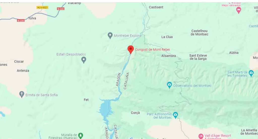 Por la provincia de Lleida, se puede llegar por dos zonas. La Norte, desde cerca de Tremp hasta Puente de Montañana, es una carretera provincial, C-1311, prácticamente toda es un puerto de montaña, y una local que sale cerca de la estación de tren de Guardia de Tremp, la carretera LV-9124. también tiene curvas, es más estrecha, pero a mí se me hizo más corto el camino que por la anterior.