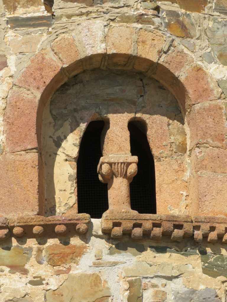 El ábside fue objeto de una interesante explicación. Son dos aberturas, con una columna en medio. Pero….la mujer decía, que esas dos aberturas, vistas desde dentro, cuando daban los rayos del sol y se reflejaban en el centro, simulaban ser la Virgen y San José y dependiendo de la inclinación, podían parecerse a una monja y un monje. O incluso llevando algo en las manos. La mujer nos enseñó en su móvil, varias fotos tomadas de esos reflejos.