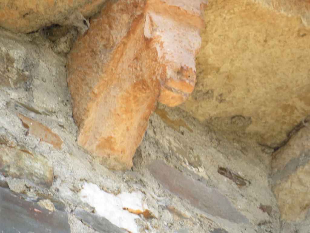 Y exteriormente, nos enseñó un sillar pensando que podría ser la marca del cantero. Yo le dije que lo que me enseñaba, no parecía la marca del cantero, pero hice esta foto con zoom y debajo, si parecía haber marcas de cantero.