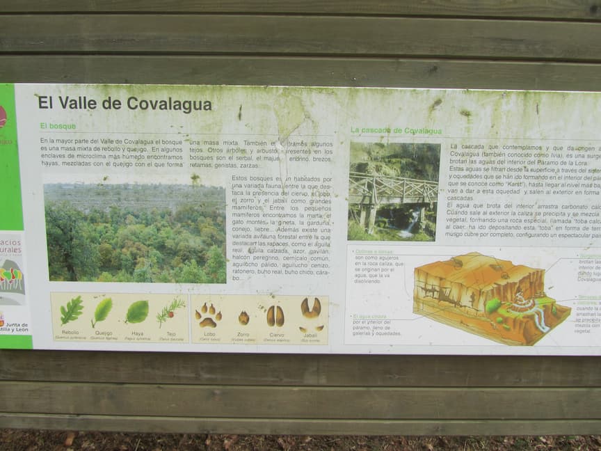 - LA RUTA DE COVALAGUA.-https://www.terranostrum.es/senderismo/sendero-cascada-de-covalagua Es una ruta circular, corta, 5`2 km. sin apenas desnivel, por la que se puede andar, está muy bien señalizada. Cerca de la Iglesia de Revilla de Pomar, se toma la senda, el camino es agradable, en varias partes sombreado, y se llega a la Cascada de Covalagua. En verano, no hay demasiada agua. En esta zona hay dolinas, lapiaces, simas y cuevas.