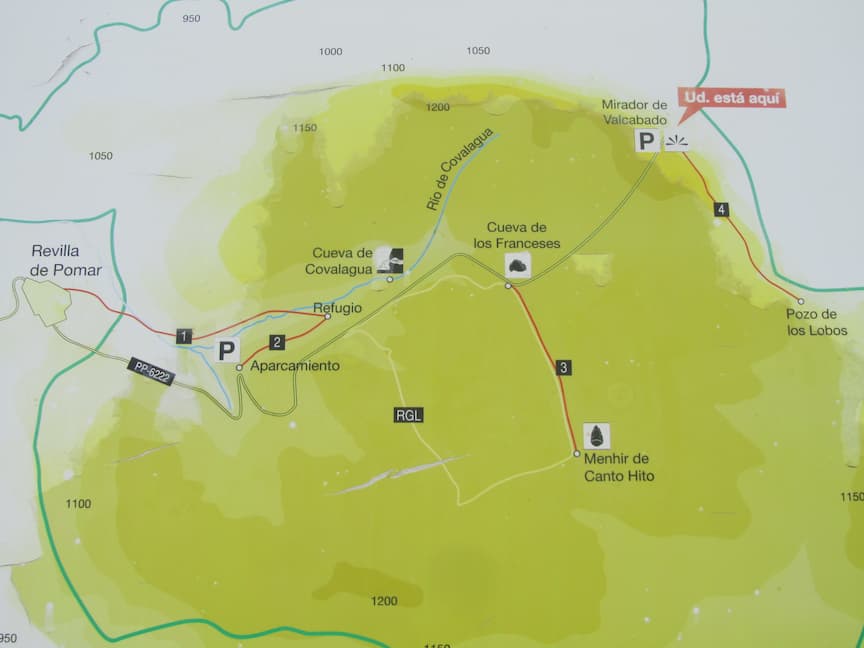 A 12 km de Aguilar de Campóo (Palencia),y 77 km de Burgos, está Revilla de Pomar y a un kilómetro escaso del pueblo sale el Sendero del Valle de Covalagua. Este espacio natural es un buen ejemplo de formación kárstica.