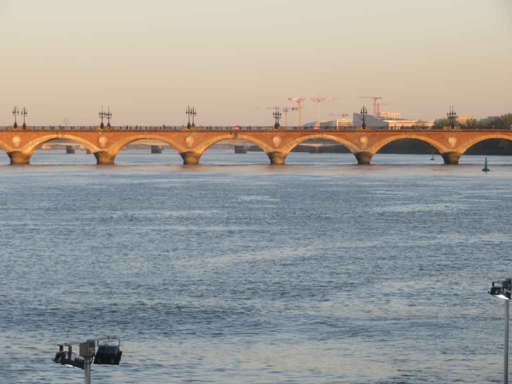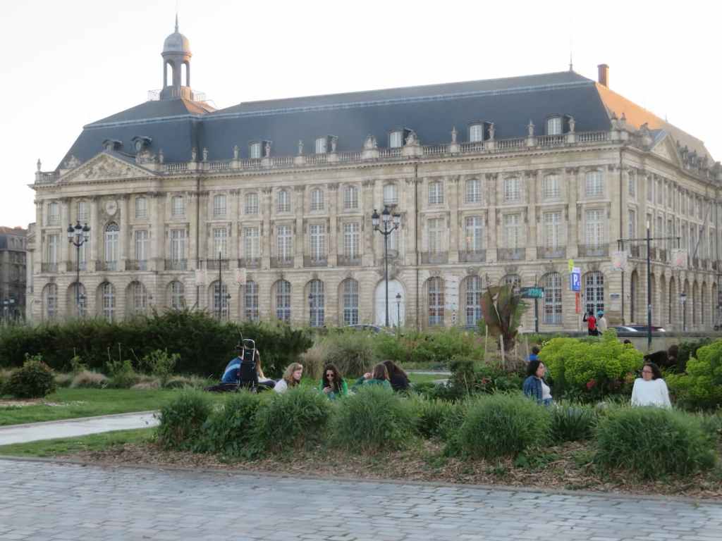 Ninguna ciudad europea se libra de las obras, y aquí no pude ver, alguna iglesia y unos museos que me interesaban. En un paseo por la ciudad, en una mañana puedes ver la Catedral gótica, con una puerta y algún arco románico, una torre exenta, el antiguo ayuntamiento, que estaba en obras, varias puertas de la ciudad el Teatro, la plaza de Quinconces, punto neurálgico donde coinciden cuatro líneas de tranvía y algunos autobuses urbanos e interurbanos. Y el paseo paralelo al río, zona en la que la abundante población joven bordelense, se junta, bien para hacer un pic-nic, para charlar, correr o montar en bicicleta. Hay muchas zonas de césped y escaleras, y los jóvenes se sientan donde pueden, pues hay escasos bancos. También hay zonas para hacer skate. Es un paseo agradable y desde allí ves pasar toda la ciudad.