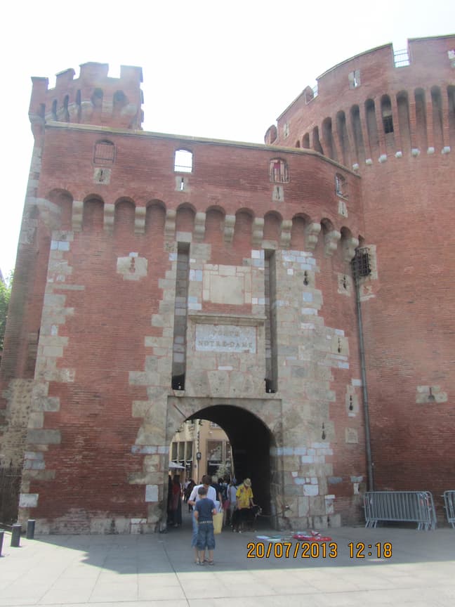 Perpignan, como perteneció al Reino de Aragón e históricamente ligada a los Condados Catalanes en el Roselló (Rosellón), perdido como consecuencia de una guerra, su bandera es la catalana o aragonesa, cómo lo quieras ver. Toda esa zona se autotitula «pays catalá». Muchas calles y pueblos están nombrados doblemente, en francés y catalán. Aunque no oigas hablar catalán, pues Francia no admite del todo el bilingüismo.