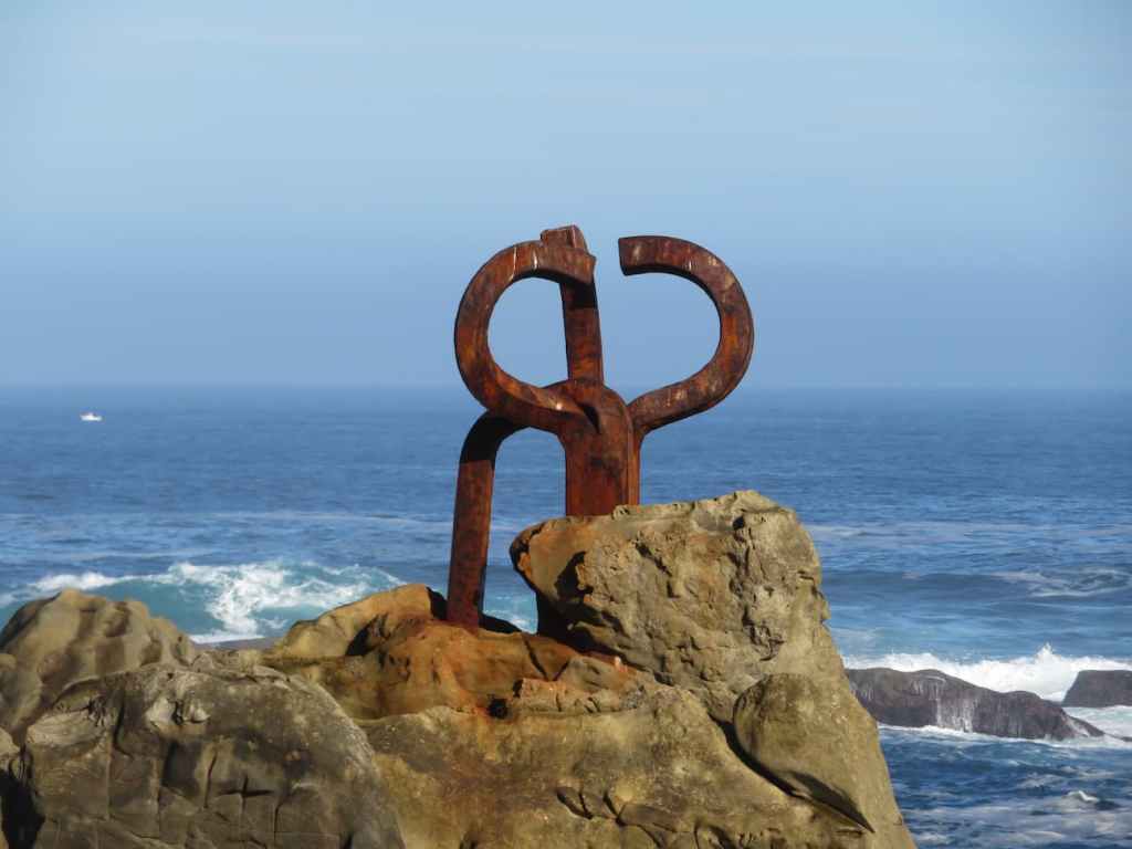 El Peine de los Vientos, la célebre escultura de Chillida, a un extremo de la Bahía.
