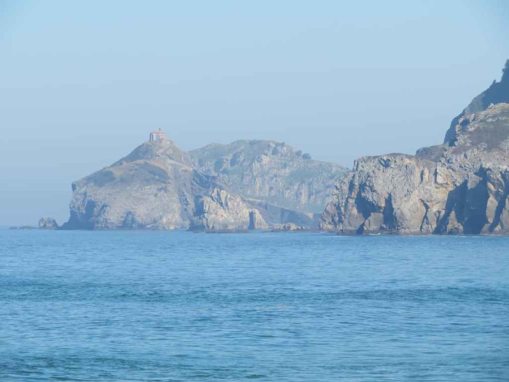 Mi segunda etapa, fue subir directamente, por Begoña y cerca del Aeropuerto hasta Bakio, dónde por ser temporada baja había muy pocos sitios abiertos, pero me senté en una terraza a ver la playa, cerca de Bakio y antes de la Central Nuclear de Lemóniz, esta Armintza, con esta preciosa isla.